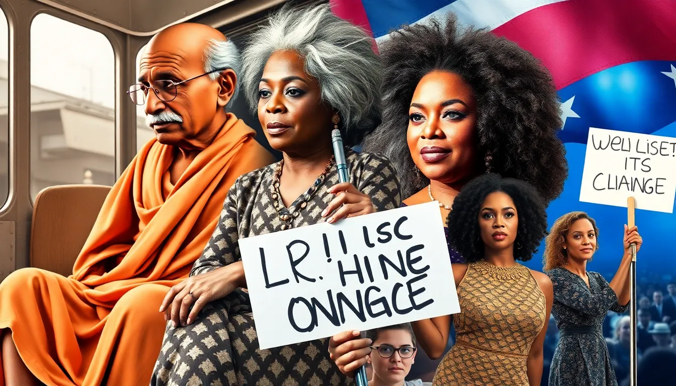 • Mahatma Gandhi: Advocated for nonviolent resistance and led India to independence, promoting civil rights globally.